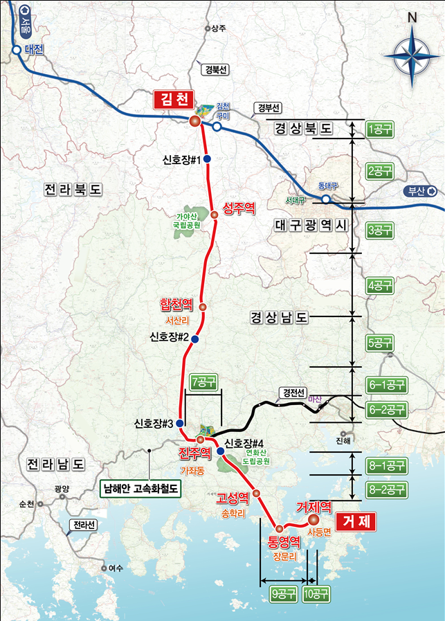 1~9공구는 실시설계가 마무리 단계이며 거제 구간(10공구)은 기술형 입찰방식으로 발주될 예정이다.