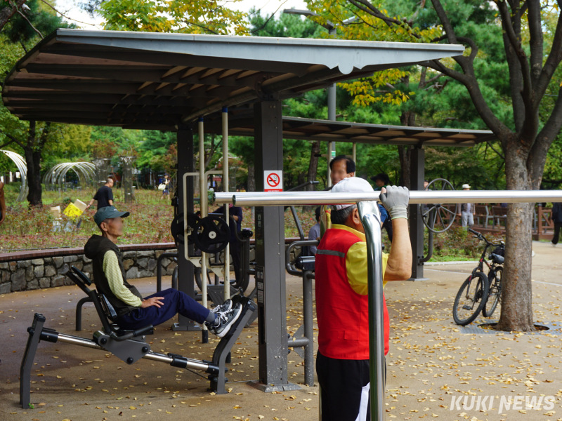 같은 날 16일 오후 방문한 서울 송파구 송파나루공원에도 어르신 놀이터가 마련돼 있었다. 기구를 활용해 팔 운동을 하던 김명성(69)씨는 “10년째 여기서 운동하며 근육을 키웠다”며 “헬스장과 크게 다를 바 없지만, 이 공원에선 나이 드신 분들도 안전하게 운동할 수 있는 기구가 많다”고 했다. 시에 따르면 지난해 어르신 놀이터 만족도 조사 결과 이용객 95%가 만족한다고 답했다. 이유로는 △높은 접근성 △친구·이웃과 소통 가능 △연령대에 맞는 건강관리 가능 등이 꼽혔다.