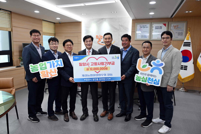 재경농협밀양향우회는 지난해 900만원의 기부금을 전달한 데 이어 올해는 기부 규모를 확대해 고향 사랑의 마음을 다시 한번 실천했다. 이번 기탁금은 향후 밀양시의 복지 증진 및 지역발전 사업에 소중히 사용될 예정이다.