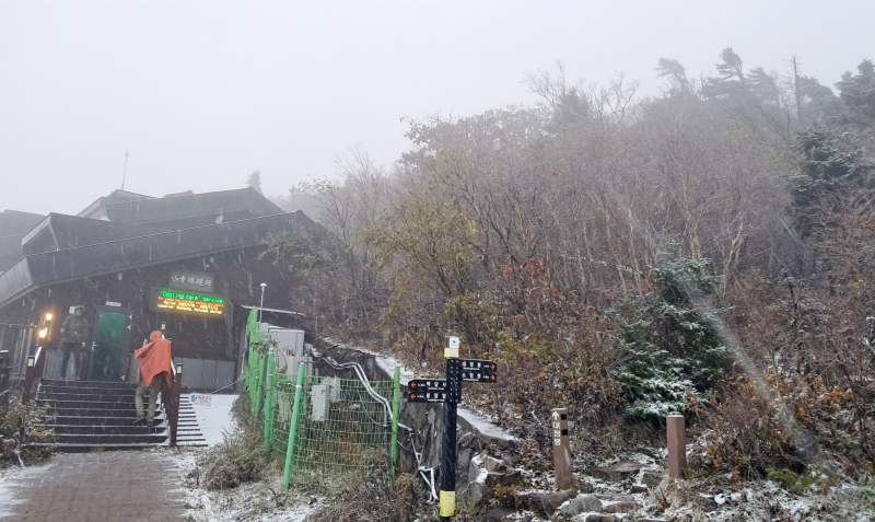 이번 설악산 첫눈은 지난해(10월 19일)보다 하루 늦고, 2023년(10월 21일)보다 하루 빠르다.