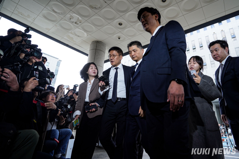 ‘SM 시세조종’ 김범수‚ 1심 선고 법원 출석…카카오 ‘운명의 날’ [쿠키포토]