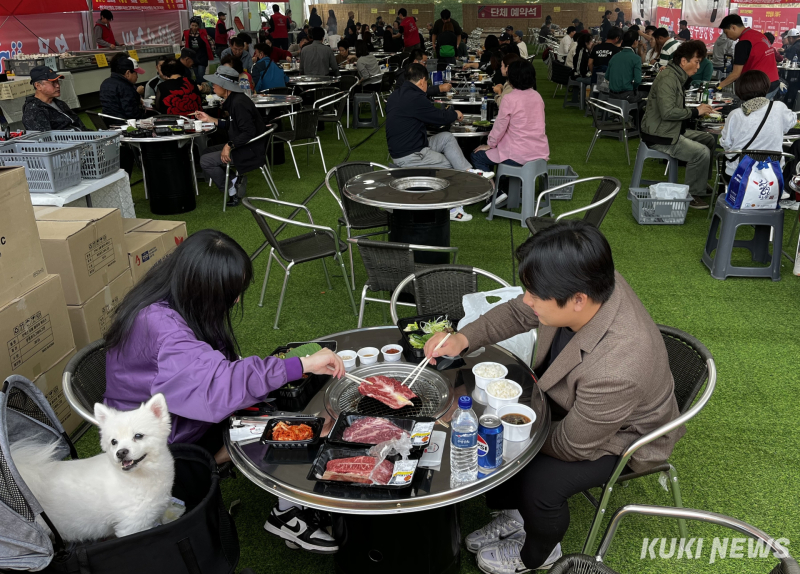 횡성한우축제 인기 최고 ‘구이 터’…남녀노소, 멍멍이까지 [쿠키포토]